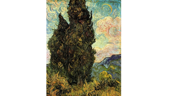 Он прожил в Овере 70 дней. За эти 70 дней он написал больше 70 картин. И каждая картина завершена. Это портреты – и женские, и мужские – такие, как портрет доктора Гаше, и церковь в Овере, черные вороны, летящие над золотым полем пшеницы. Для него любая натура – все, что он пишет, равно одушевлена и абсолютно жива. Именно в Овере он пишет свои знаменитые кипарисы. А какой поразительный цвет он пишет! Темно-зеленый. Эти живые кипарисы – метафизика жизни природы, ее рождения. Его кипарис не стоит. Каждую минуту, каждую секунду, он растет на наших глазах, вырываясь из-под земли. Он рассказывает, он показывает, он вводит нас на высший уровень бытия этой самой материи, только художественным языком.