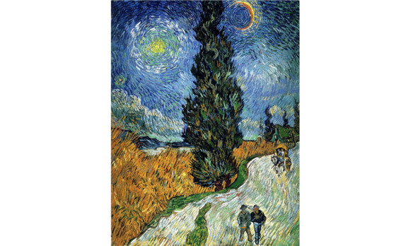 Есть картина, которую он написал в Овере, и на которой он отобразил небо, как близость Млечного пути – просто отдельное небо ночью (хотя, он старался не писать небо в черных тонах). Темно-синяя бездна, темно-синяя глубина, где зажигаются большие золотые звезды. Эти звезды и этот золотой свет создают очень странную перекличку.