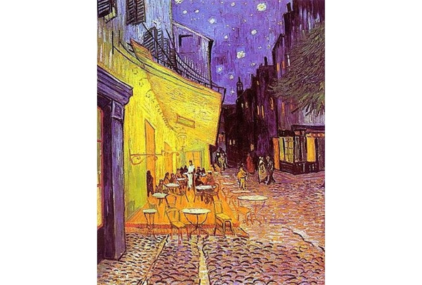 Я хочу рассказать немного о его арльском периоде и собственно о «Ночном кафе», которое он написал в 1888-м году в городе Арле. На самом деле это две картины, а не одна. Одна картина – это ночное кафе на улице, а вторая картина – это ночное кафе изнутри. То есть «Ночное кафе» в Арле имеет, как бы две главы. Сам Ван Гог очень много писал об этом ночном кафе в своих письмах. Он хотел написать соединение трех контрастов, объединить в едином состоянии три контраста: эту какую-то абсолютную пустынность улицы, ночь, официанта, редких посетителей, немоту, необщение.