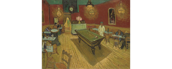 Его картины, хоть они и есть беспрецедентное явление живописной выразительности, этой раскаленной печи творчества, они всегда еще и для того, чтобы рассказать о себе: или о своем состоянии, или о своей радости ожидания, или о своем предельном отчаянии, или о своем ожидании счастья. Как ни странно, они всегда очень глубоко эмоциональные рассказы. Это рассказы и в письмах, и в картине. В «Ночном кафе в Арле» он, как бы описывает картину подлунного мира: связь между теплым диском золотого света и пустоты одиночества, отклика в синем небе и звездах. Это большая эмоциональная картина, это рассказ, это исповедь. Но когда вы входите внутрь кафе, вот тут я уже не могу удержаться и не прочитать то, что пишет сам Ван Гог об этом кафе.