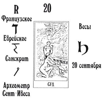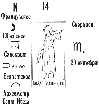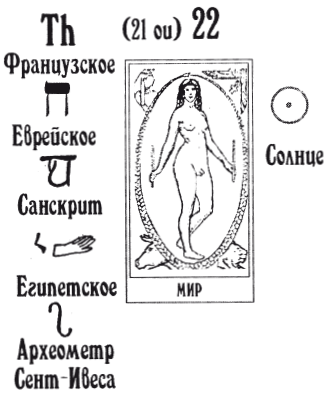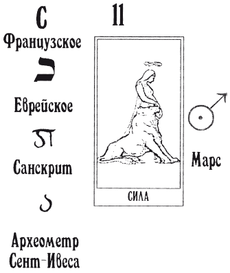 Эта карта, по отношению к медицине духа, означает: Справедливость, Правдивость, Честность, Прямота, Добросовестность, Правильность, Разумность, Юстиция, Исполнение. – Тот, или Книга Тота.