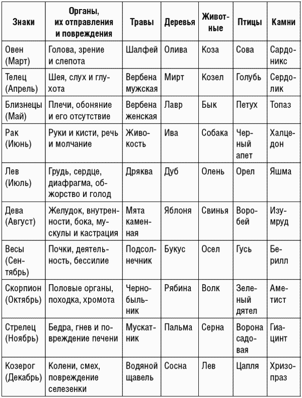 Таково вкратце отношение знаков Зодиака к частям тела, и не думайте, что это лишь игра воображения или фантазии. Вспомните, насколько опасно повреждение члена, в знаке которого находится Луна.