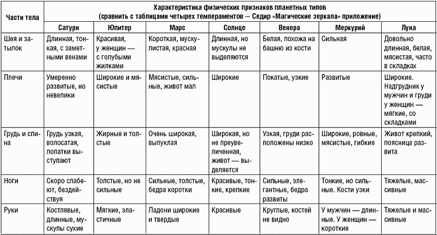 Вторая таблица влияния планет