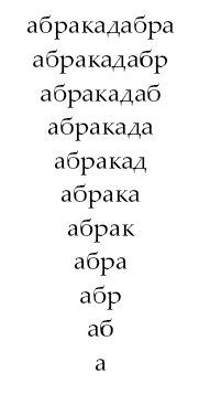 Общей чертой всех перечисленных подходов является то, что формулой считается слово, для создания которого перестраиваются другие слова. Формула взаимодействует с семиотическими кодами, формирующими наш мир и регулирующими его. Например, когда я обнаруживаю, что попался в ловушку семиотического кода дуальности, где мир – это либо материя, либо дух, люди – либо друзья, либо враги, а информация – либо правдивая, либо ложная, я беру Слово Эона Кроули, объединяющее (по его словам) верх и низ, и говорю: Абрахадабра. Если я наделю это слово смыслом и силой, оно может извлечь меня из сетей дуализма и открыть мне новое мировоззрение, или, по терминологии Кроули, новый Эон. Магическая формула, как и глоссолалия, кажется бессмысленной, поскольку слова имеют смысл только в рамках кодов, а магическая формула находится вне кода и призвана сломать и уничтожить его. Интересно, что слово Абракадабра, из которого Кроули вывел свою формулу, первоначально отображалось на амулетах следующим образом: