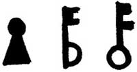 Ключ и замочная скважина: у ключа богатая символическая подоплека. Он открывает двери и запирает их, открывает доступ к иным сферам и олицетворяет мудрость, зрелость, силу и успех. Ключ также символизирует право собственности и позволяет получить к ней доступ. По смыслу замочная скважина связана с ключом, это точка доступа для него. Так изображают запертое или защищенное помещение, скрытый потенциал того, что еще не изучено в полной мере. Сквозь замочную скважину можно заглянуть в другой мир. Эта пара (ключ и замочная скважина) может иметь сексуальные ассоциации, чаще всего с ключом как входящей силы и замочной скважиной в качестве принимающей.