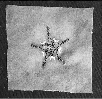 Я очень люблю краски для ткани. (Да, их все еще выпускают! Это на случай, если вы думаете, что человечество перестало это делать в конце восьмидесятых – начале девяностых.) Существует огромное количество оттенков таких красок, они отлично смываются и сравнительно быстро сохнут. Мне нравятся краски бренда Tulip. Их выпускают в бутылочках объемом 35 г, которые легко держать и удобно использовать. Среди этих красок есть несколько очень красивых металлизированных цветов. Если вам некомфортно сразу начисто рисовать от руки, держа на весу маленькую бутылочку краски, попробуйте сначала нарисовать контур сигила при помощи мела или смывающихся ручек/маркеров/карандашей, а затем по линиям контура обвести красками. Есть одно интересное место, куда вы можете нанести свой сигил, – на носки! Там вы будете видеть его каждый раз, когда надеваете носки, но при этом он будет скрыт от посторонних глаз. Или можно вышить сигил на обратной стороне любимого галстука. Если это вас больше вдохновляет, думаю, вы даже можете наносить сигилы на нижнее белье. (Возможно, это будет весьма удобным местом для размещения сигила, олицетворяющего плодовитость, если вы ставите перед собой такую цель? В таком случае с осторожностью подходите к процессу.)