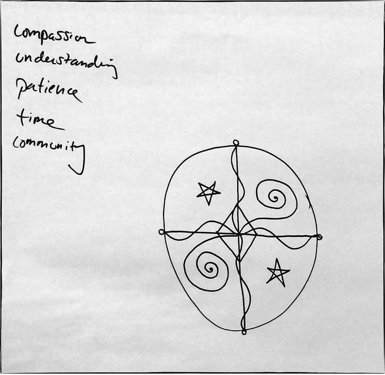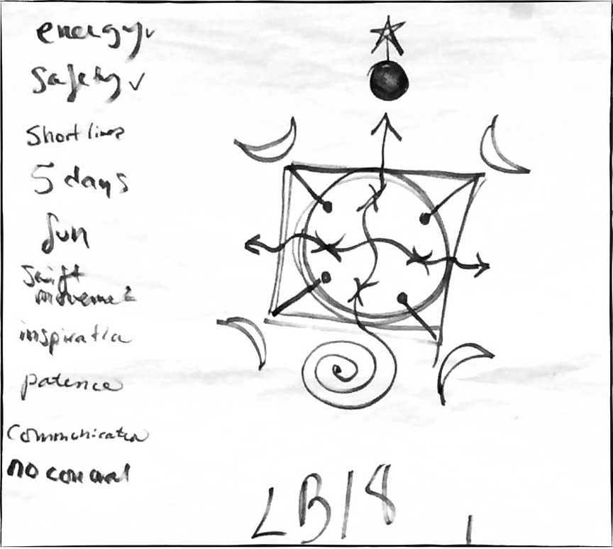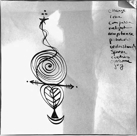 Фестивальные сигилыНиже приведены примеры символов, созданных для массовых акций. На каждом мероприятии, где я провожу мастер-классы и аудитория работает над разработкой сигилов вместе со мной, это входит в процесс обучения. Мы обсуждаем ожидания от этого процесса, чему хотим научиться, какие цели ставим перед собой и т. д. Мы проводим мозговые штурмы, составляя список ключевых слов, а затем тщательно обдумываем каждое из них, выбирая форму его визуального представления. Подобный опыт сотрудничества всегда доставляет массу удовольствия. Я включила в книгу несколько примеров таких сигилов вместе со связанными с ними списками ключевых слов.