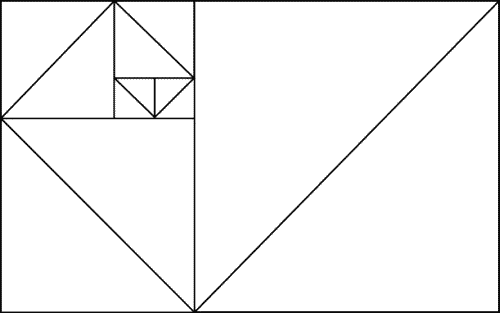 К числу таких рядов относится, например, последовательность Фибоначчи (Леонардо Пизанского), итальянского математика XIII века. Помимо прочих достижений, он содействовал введению арабских цифр, а также вывел числовой ряд, соответствующий натуральной спирали. Он начинается с 1, затем идет снова 1, а дальнейшие числа образуются сложением двух предыдущих. Получается такая последовательность: 1, 1, 2, 3, 5, 8, 13, 21, 34… Если нарисовать квадраты со сторонами, равными каждому из чисел последовательности, а затем соединить диагонали этих квадратов, то получится спираль (см. рис. 2).