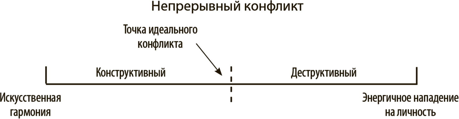 Все это не означает, будто продуктивный конфликт не вызывает некоторого дискомфорта. Даже полностью открытые члены команды всегда будут ощущать определенный уровень неудобства, связанного с несогласием. Но это будет здоровый дискомфорт, знак продуктивной напряженности от того, что порождает обсуждения и споры.