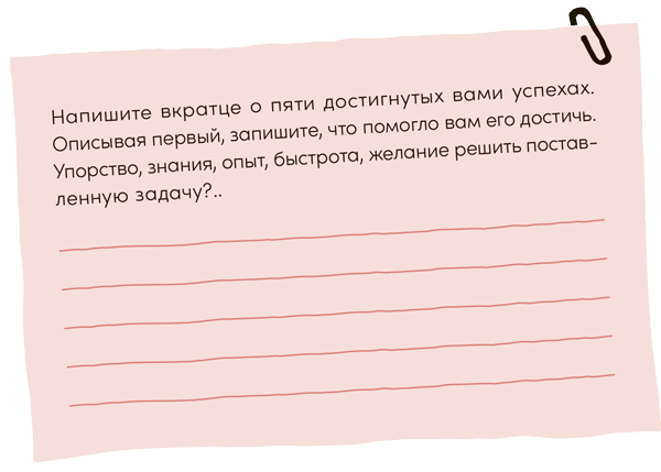 Вы уже рассчитываете на себя. Вы ищете внутри себя инструменты, которые помогали вам раньше. Мы забываем о них, потому что не придаем значения тому, чего добиваемся, а когда перед нами встает новая задача, требующая решения, уже не помним, что делали в прошлый раз.