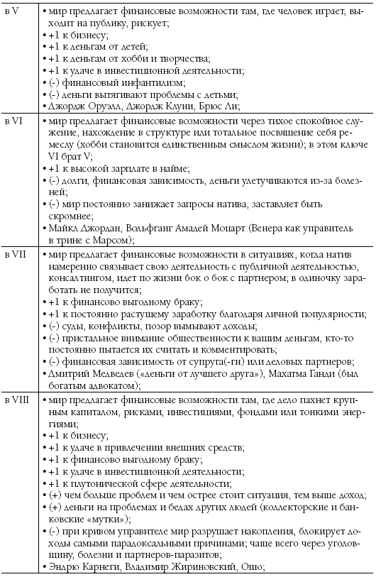 ❒ деньги делового партнера, супруга, инвестора (частое заблуждение – в восьмой дом пихают самого инвестора, но его там нет, он в седьмом доме);