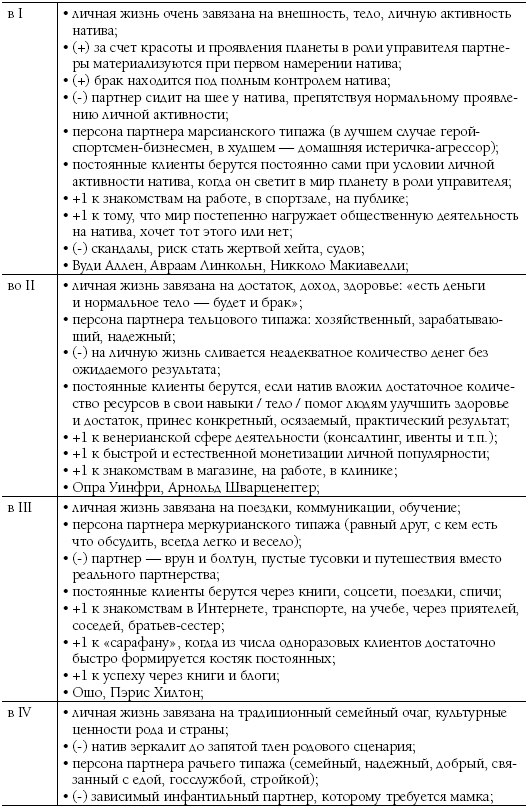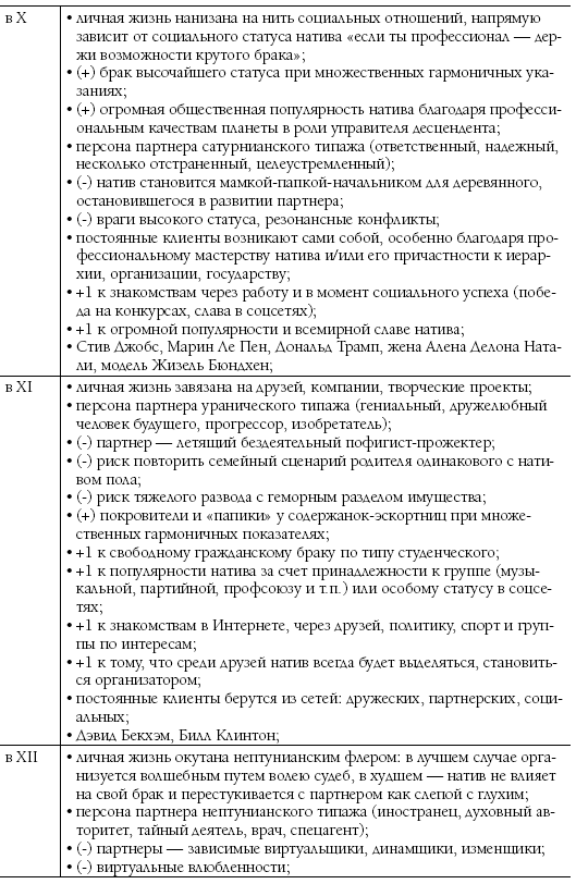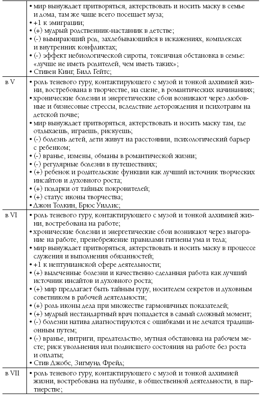 3) вторым проходом группируем отдельно соединения личных, социальных и высших планет, пересекая их впоследствии друг с другом как сценарии (Сатурн-Уран – «организованность и холодная отстраненность»; Солнце-Луна – «внутренний ребенок», Венера-Марс-Нептун – секс и деньги здесь и сейчас, но умноженные на иллюзии, фантазии, художественное вдохновение, истеричные комплексы и побег за мечтой);