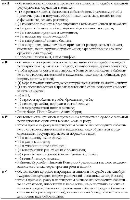 По оказии на роль управителя выбираются разные актеры. В рамках моего метода управитель определяется только по знаку на вершине дома. Где-то идет полная стыковка, когда управитель совпадает с сигнификатором (К2 в Тельце – значит собственное качество деньгораспоряжения получило задачу от судьбы распоряжаться деньгами), где-то частичная (К2 в Близнецах – собственное качество ученика-продажника занимается привлечением денег), где-то полное несоответствие (К2 в Скорпионе – собственное качество энергетического разрушителя закабалено, чтобы сохранять и зарабатывать деньги своими руками).