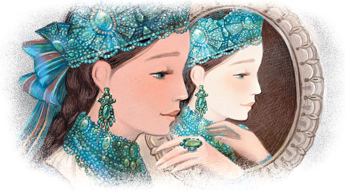 У Настасьи, Степановой-то вдовы, шкатулка малахитова осталась. Со всяким женским прибором. Кольца там, серьги и протча по женскому обряду. Сама Хозяйка Медной горы одарила Степана этой шкатулкой, как он ещё жениться собирался.