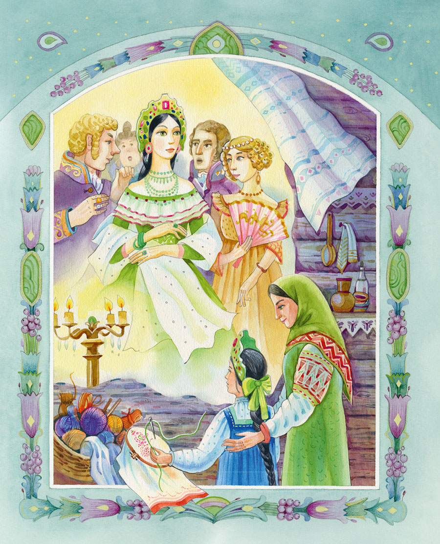 Ну, вот, вышила Танюшка тот патрет. Глядит Паротя – фу ты, боже мой! да ведь это она самая и есть, одёжей да каменьями изукрашенная! Подаёт, конечно, три сотенных билета, только Танюшка два-то не взяла.