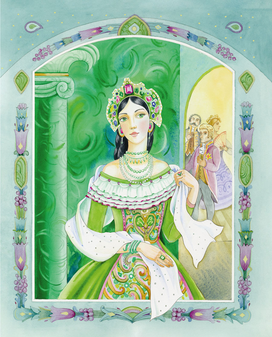 Слух про каменья да турчаниновску невесту и до царицы дошёл. Она и говорит: