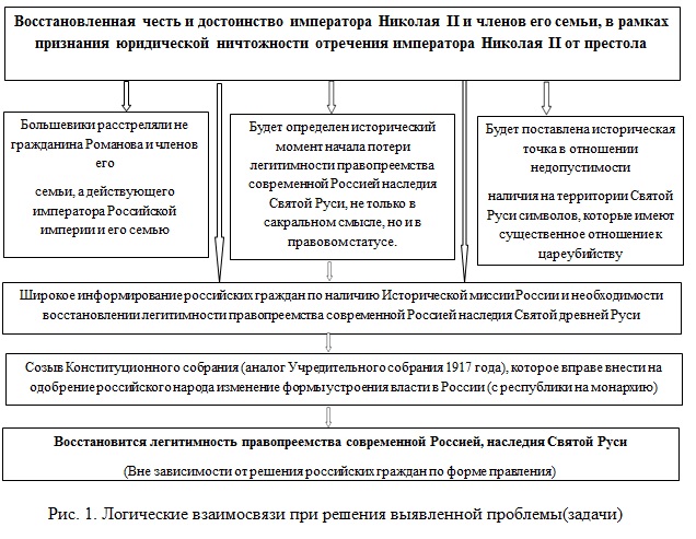 Важный шаг (после широкого информирования российского народа о наличии исторической миссии России, юридической ничтожности «отречения» императора Николая II от престола и других важных моментах), в том числе как стратегический ответ России на поступающие вызовы и угрозы политической и экономической безопасности России, необходимо восстановить легитимность правопреемства Российской империей от Святой древней Руси.