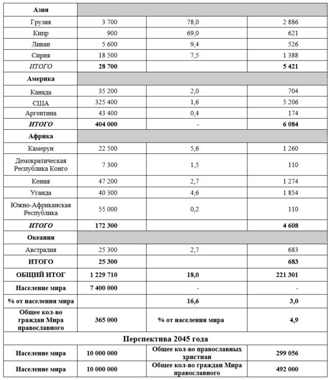 Ниже представлена таблица 1, где отмечены государства с определенным удельным весом населения, которое, по официальным данным (с известным уровнем погрешности), исповедует православие. В конечном итоге это на сегодня и есть мир православный (основополагающая часть), который необходимо как минимум объединить и как максимум расширить.
