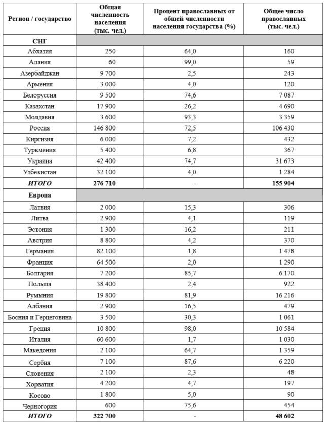 Вариант 2. Общая численность государств, где подавляющее большинство граждан исповедуют православие, составляет 330 млн человек плюс около 35 млн православных по всему миру. Итого до 365 млн человек.