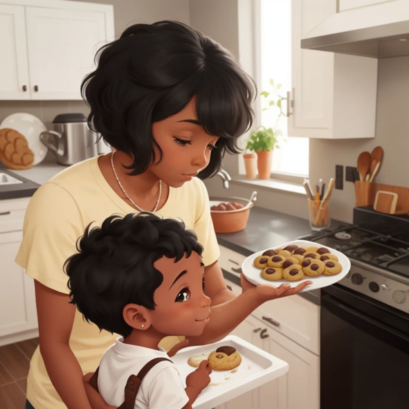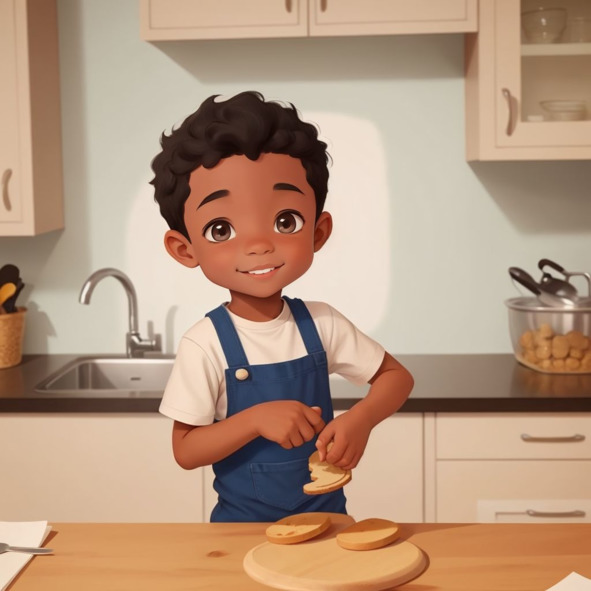 Джейден проснулся рано с широкой улыбкой на лице. Сегодня был особенный день, потому что он собирался помочь маме на кухне. Он долго ждал этого момента. Джейден любил смотреть, как его мама готовит и печет. Он всегда хотел попробовать это сам. Его мама сказала, что они будут печь печенье вместе. Джейден был очень взволнован.