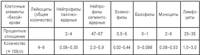 Таблица. Нормальные показатели «белой» крови
