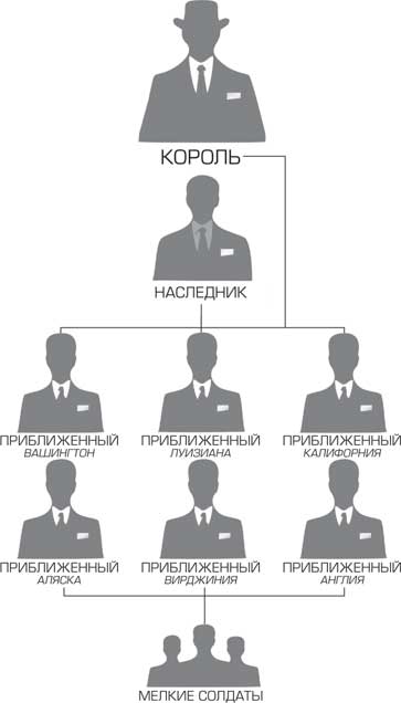 • Король: Глава организации, обладающий абсолютной властью, принимающий все ключевые решения и определяющий политику и стратегию.