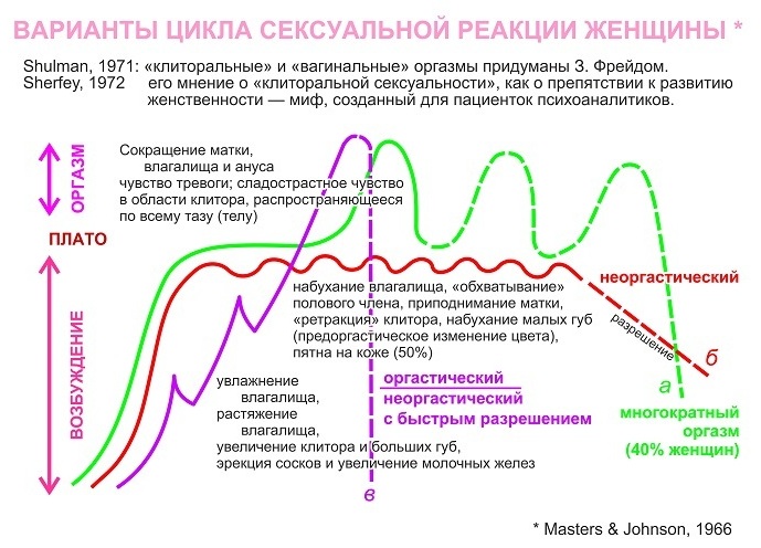 Так было подтверждено, что все женские оргазмы так или иначе задействуют пространство вокруг влагалища, клитора и таинственной точки G. А также, что женское тело способно на куда больший спектр удовольствий, чем предполагают мужчины.