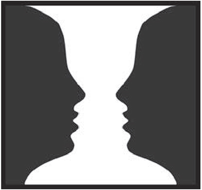 Рис. 5.1. Тут показано чередование восприятия фигуры и фона. Что вы видите: вазу или лицо? Продолжайте смотреть. Что видите сейчас? Вы, вероятно, заметите, что ваза и лицо чередуются, но не воспринимаются одновременно. Это полезная концепция для понимания, каким образом страх отделен от неподвижности. Когда человек испытывает абсолютную неподвижность, он не может (подобно вазе и лицу) одновременно ощущать страх. Это способствует расширению и постепенной разрядке активации, как показано на рисунке 5.2.