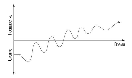 Рис. 5.2. Тут представлен цикл расширения и сжатия в процессе маятникообразного колебания. Осознание наличия этого ритма жизненно важно для человека. Это позволяет ему понять: все, что он чувствует, изменится. Восприятие колебательного движения направляет и постепенно высвобождает (разряжает) сдерживаемые «травмирующие энергии», что приводит к разнообразным телесным ощущениям и успешному разрешению травмы.