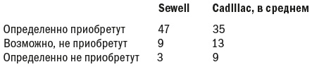 Табл. 2. Процент покупателей, которые приобретут/не приобретут такой же автомобиль у того же дилера