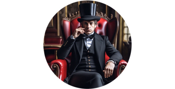 Справа раздавался стук, без определённого ритма и рисунка. Я пытался найти хоть какую-то последовательность в ударах, хотелось посмотреть, что же издает этот стук и только подумал об этом, как голова послушно повернулась и глаза, через которые я смотрел, вопросительно уставились на странного человека в цилиндре и узком пиджаке с чересчур большими круглыми пуговицами. Он сидел в мягком крутящемся кресле, напоминающем трон, отделанный красной кожей. Один глаз был нормальный, другая глазница пустая и глаз он манерно держал в левой руке, нежно сжимая пальцами, оттопырив мизинец в сторону. Или это правая рука? Наверно для него правая, а для меня тогда получается левая. А с какой стороны смотрю я, со своей или его? Почему-то сейчас это было очень важно.