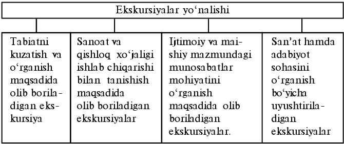 Ekskursiyalar quyidagi to‘rt yo‘nalishda uyushtiriladi: