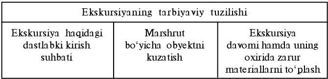 Ekskursiya jarayoni quyidagi tarkibiy tuzilishga ega: