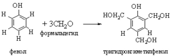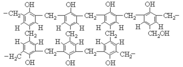 Тригидроксиметилфенол, реагируя с фенолом, способен отщеплять воду и образовывать трехмерную сетчатую структуру: