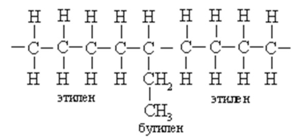 Этот полиэтилен обычно называют полиэтиленом низкой плотности. Разработаны методы получения полиэтилена низкой плотности при низком давлении и умеренных температурах сополимеризацией этилена с другим олефином, например, бутиленом CH2=CH—CH2—CH3. Там, где в цепь встраивается бутиленовая единица, образуется короткая боковая цепь: