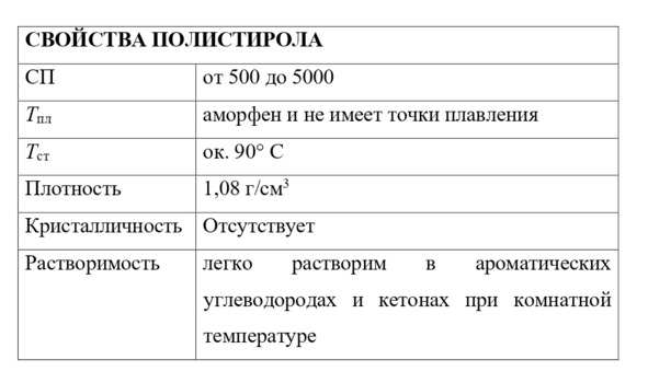 (ПС) [—CH2—CH (C6H5) —] n синтезируют из стирола C8H8 с пероксидными или азоинициаторами при температурах 60—150° С в жидкой фазе (в растворе, суспензии или эмульсии). Расположение бензольных колец по бокам линейной цепи препятствует кристаллизации настолько, что термопластический полимер получается аморфным, прозрачным, жестким и несколько хрупким.