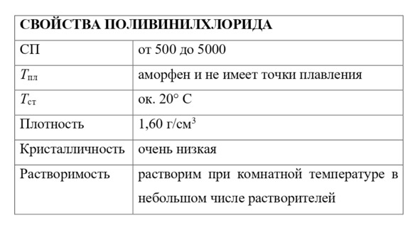 Особенно важное свойство поливинилхлорида – огнестойкость, связанная с присутствием хлора в его молекуле (ок. 55%). Хлор придает поливинилхлориду жесткость, полимер размягчается лишь при высоких температурах; по этой причине в некоторых случаях приходится вводить пластификаторы (10—40%), чтобы сделать его более легко формуемым, выдавливаемым и выдуваемым. Поливинилхлорид используется в больших количествах в производстве волокон, пленок, труб, резины, формованных изделий, искусственной кожи и покрытий.