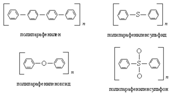 Растет спрос на термопластические материалы с достаточно высокой жесткостью (более 14 000 МПа) и высокой температурой размягчения (выше 500° С), чтобы заменить металлы в производстве двигателей, а также космических кораблей, самолетов, автомобилей, железнодорожных вагонов и судов. От новых материалов требуется легкость (низкая плотность), относительная простота обработки и повышенная коррозионная стойкость. Этим требованиям лучше всего удовлетворяют линейные макромолекулы со многими ароматическими звеньями в цепи. Примерами могут служить: