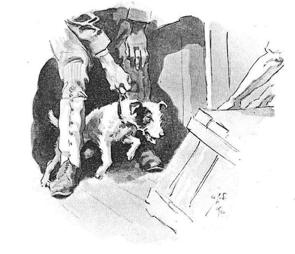 Прошло ещё немного времени, и Человек-в-Грязном пришёл снова. Самый Маленький не мог спуститься из-за горла. Джеймс пошёл и много с ним разговаривал. Человек сказал, что это первоклассное шоу для коронованных особ, но сначала он вымоется. Джеймс сказал Хозяйке. Итак, Человек-в-Грязном пришёл в Квартиру, и это было первоклассное шоу для Самого Маленького и для всех – для нас и нашей Эдар. Но Пёс Тоби был медлителен и печален. Человек-в-Грязном сказал Хозяйке как хозяин и как человек: это потому, что Пёс Тоби изнемогал-отдавая-слишком-много-за-деньги, и хотел отдыха-и-хорошего-доброго-дома. В это время Пёс Тоби лежал на спине и закатывал глаза, как больной щенок. Эдар сказала: