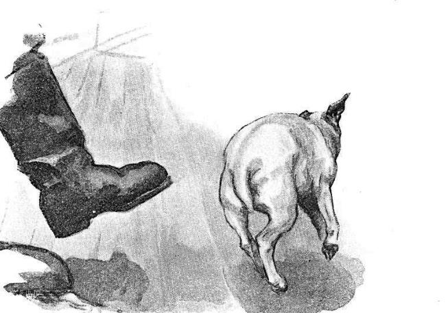 Я часто видел, как Пьерроне, мой Хозяин, который отдал меня незнакомым людям, с непокрытой головой сгибался перед боковой дверью Chateau там, в моём потерянном мире. Он никогда не был красавцем. Но Он – Моя Собственная Кость! – хотя тоже был с непокрытой головой, стоял красиво, прямо и так, как должен стоять породистый крестьянин, когда Его и Его близкую не мучают Хорьки или Гуси. На короткое время Он и Породистая забыли обо мне. Они явно были старыми знакомыми. Она говорила; она размахивала своими размашистыми руками; она смеялась. Он отвечал серьёзно, с достоинством и непринужденностью, как мой друг виконт. Потом я много раз слышал своё имя. Думаю, что Он, возможно, рассказал ей что-то о моём появлении в этом мире. (Мы, крестьяне, никому всего не рассказываем). Чтобы доказать ей мой характер, как Он его себе представлял, Он бросил камень. Со всей определённостью, какую позволяла любовь к Нему, я дал понять, что эта игра в комнатных собачек не для меня. Она велела нам возвращаться в лес. Там Он сказал мне так, будто речь шла о Его великолепных ботинках: