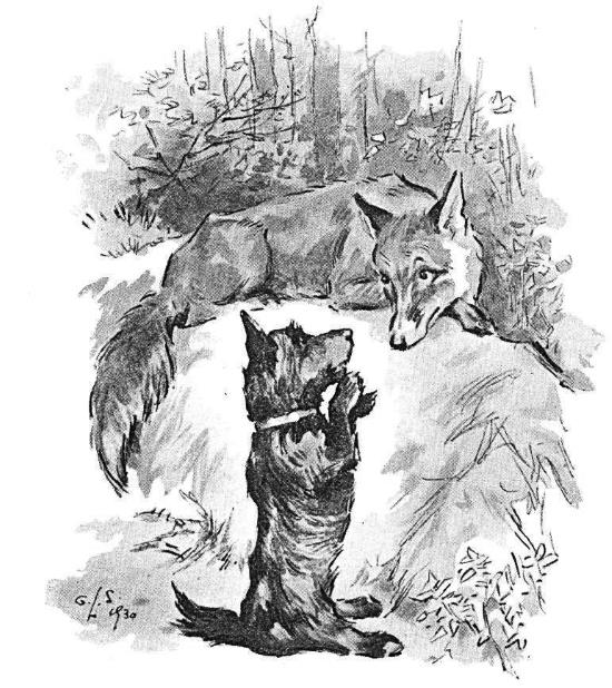 Всё то время Самый Маленький приходил к нам посидеть, кроме случаев, когда Гувви забирала его или когда были прогулки в Парке. Я тоже был на месте, за исключением случаев, когда Хозяин хотел, чтобы я помогал ему обходить фермы. Однажды я увидел Тэгса на Опушке Леса. Я рассказал о Рэведжере. Он сказал: