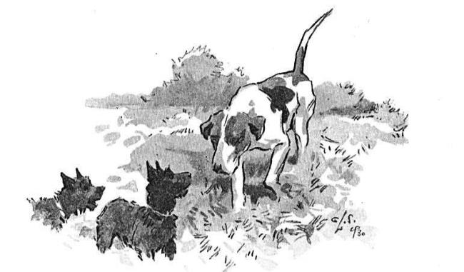 Тэге проскочил под носом у Тэффи. Раздался роскошнейший вопль, от которого Эдар залезла бы под простыни. После этого я был не так быстр, как Рэведжер. Там осыпалась земля, и был крепкий дёрн, который Рэведжер знал назубок. Была хорошая проверка у Новых Елей, как и сказал Тэге. Слипперс и я побежали. Через некоторое время Тэге бросил взгляд вниз, на Долгий Спуск. Рэведжер висел у него на хвосте. Это была настоящая работа. Мы со Слипперсом взобрались на Еловый Холм и наблюдали. Тэффи и Самый Маленький становились всё меньше и меньше на Долгом спуске. Мур и Магистрат тоже. Тэге и Рэведжер были самыми маленькими, самыми далёкими возле Летней Псарни. С Летней Псарни шёл обычный неприятный шум: так обычно шумят собаки, которым не дают охотиться, когда они захотят. Я был счастливым псом, потому что не любил ни Выскочку, ни Эгоиста. Ни новых Охотничьих Терьеров. (Слипперс тоже). Мы плясали и пели.