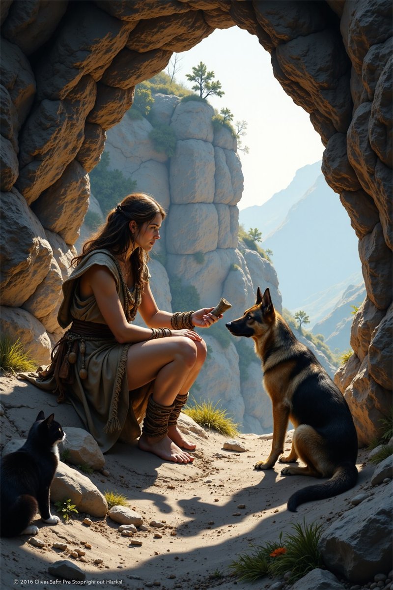 Дикий Пес заполз в пещеру, положил голову Женщине на колени и сказал: "О, мой Друг и жена моего Друга, я буду помогать твоему Мужчине охотиться днем, а ночью буду охранять твою Пещеру".