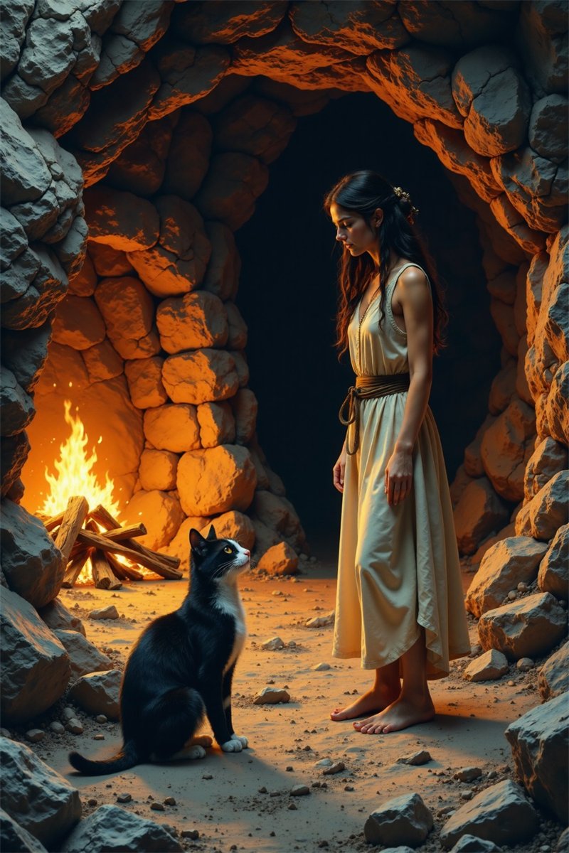 Кот тут же прыгнул и схватил маленькую мышку, и Женщина сказала: "Сто благодарностей. Даже Первый Друг не настолько проворен, чтобы поймать маленькую мышь так же быстро, как ты. Должно быть, ты очень умен".
