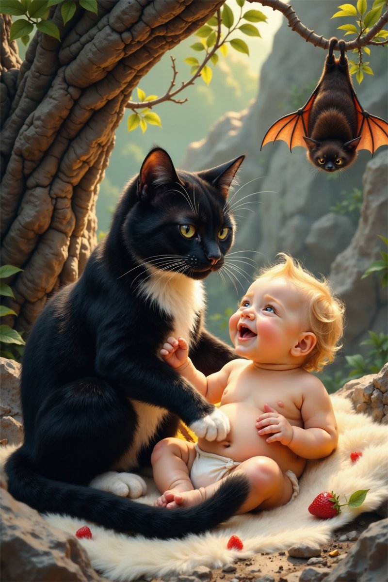 И одним вечером Летучая Мышь сказала: "В пещере появился Малыш. Он такой свежий, розовый, пухленький и маленький, и очень нравится Женщине".