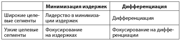 Таблица 2. Общие стратегии по Портеру