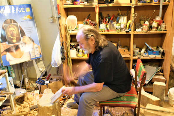 Леонтий Усов в своей мастерской. 2020 г.