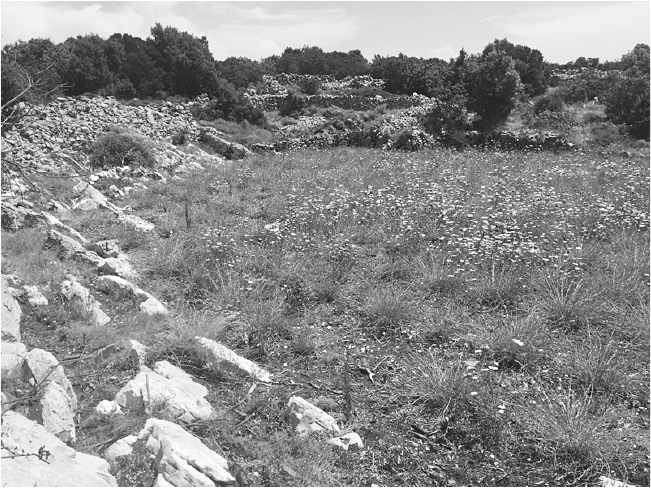 Рис. П.1. «Циклопические» стены загона с другими древними постройками на заднем плане на острове в Далмации (регион Хорватии)