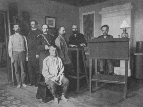 Санкт-Петербургская Сыскная полиция, Антропометрическое отделение. Измерение роста, локтя и головы. 1900 г.