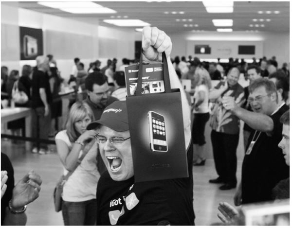 Во-вторых, я стал свидетелем одного события на местной телевизионной станции примерно в то время, когда Сэнди обратилась за помощью. В преддверии появления нового поколения iPhone от Apple длинные очереди покупателей начали виться по городским кварталам. Некоторые всю ночь ждали в спальных мешках, когда откроются двери магазинов, чтобы ворваться и ухватить новый телефон. Утром в день запуска iPhone 5 одна из телевизионных станций моего родного города прислала репортера, чтобы осветить явление.